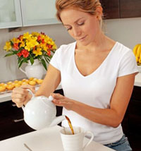 There are lots of reasons why I enjoy a hot cup of tea: I love the aroma of various flavors of tea; holding onto a hot tea mug warms my hands on a cold winter morning; sipping tea in front of the fireplace is a great way to relax. And those are just the feel-good reasons. If you're not drinking tea yet, read up on these 10 ways tea does your body good and then see if you're ready to change your Starbucks order! 1. Tea contains antioxidants. Like the Rust-Oleum paint that keeps your outdoor furniture from rusting, tea's antioxidants protect your body from the ravages of aging and the effects of pollution. 2. Tea has less caffeine than coffee. Coffee usually has two to three times the caffeine of tea (unless you're a fan of Morning Thunder, which combines caffeine with mate, an herb that acts like caffeine in our body). An eight-ounce cup of coffee contains around 135 mg caffeine; tea contains only 30 to 40 mg per cup. If drinking coffee gives you the jitters, causes indigestion or headaches or interferes with sleep -- switch to tea. ![]() Tea can make you healthier 3. Tea may reduce your risk of heart attack and stroke. Unwanted blood clots formed from cholesterol and blood platelets cause heart attack and stroke. Drinking tea may help keep your arteries smooth and clog-free, the same way a drain keeps your bathroom pipes clear. A 5.6-year study from the Netherlands found a 70 percent lower risk of fatal heart attack in people who drank at least two to three cups of black tea daily compared to non-tea drinkers. 4. Tea protects your bones. It's not just the milk added to tea that builds strong bones. One study that compared tea drinkers with non-drinkers, found that people who drank tea for 10 or more years had the strongest bones, even after adjusting for age, body weight, exercise, smoking and other risk factors. The authors suggest that this may be the work of tea's many beneficial phytochemicals. 5. Tea gives you a sweet smile. One look at the grimy grin of Austin Powers and you may not think drinking tea is good for your teeth, but think again. It's the sugar added to it that's likely to blame for England's bad dental record. Tea itself actually contains fluoride and tannins that may keep plaque at bay. So add unsweetened tea drinking to your daily dental routine of brushing and flossing for healthier teeth and gums. ![]() Tea gives you a sweet smile 6. Tea bolsters your immune defenses. Drinking tea may help your body's immune system fight off infection. When 21 volunteers drank either five cups of tea or coffee each day for four weeks, researchers saw higher immune system activity in the blood of the tea drinkers. 7. Tea protects against cancer. Thank the polyphenols, the antioxidants found in tea, once again for their cancer-fighting effects. While the overall research is inconclusive, there are enough studies that show the potential protective effects of drinking tea to make adding tea to your list of daily beverages. ![]() Tea can lose weight 8. Tea helps keep you hydrated. Caffeinated beverages, including tea, used to be on the list of beverages thatdidn't contribute to our daily fluid needs. Since caffeine is a diuretic and makes us pee more, the thought was that caffeinated beverages couldn't contribute to our overall fluid requirement. However, recent research has shown that the caffeine really doesn't matter -- tea and other caffeinated beverages definitely contribute to our fluid needs. The only time the caffeine becomes a problem as far as fluid is concerned is when you drink more than five or six cups of a caffeinated beverage at one time. 9. Tea is calorie-free. Tea doesn't have any calories, unless you add sweetener or milk. Consuming even 250 fewer calories per day can result in losing one pound per week. If you're looking for a satisfying, calorie-free beverage, tea is a top choice. 10. Tea increases your metabolism. Lots of people complain about a slow metabolic rate and their inability to lose weight. Green tea has been shown to actually increase metabolic rate so that you can burn 70 to 80 additional calories by drinking just five cups of green tea per day. Over a year's time you could lose eight pounds just by drinking green tea. Of course, taking a 15-minute walk every day will also burn calories. |